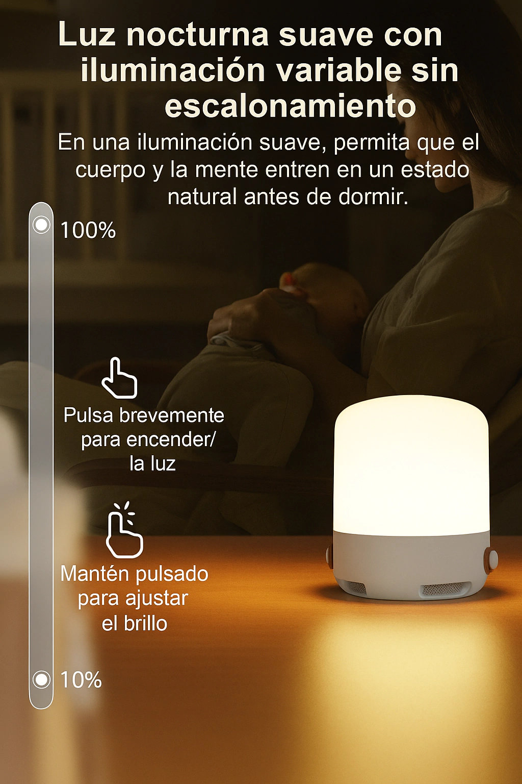 Este parlante con luz nocturna y ruido blanco es la opción perfecta para quienes valoran la calidad del sueño y el equilibrio entre tecnología y diseño. Su luz cálida y sonidos relajantes transforman cualquier espacio en un refugio de calma.
